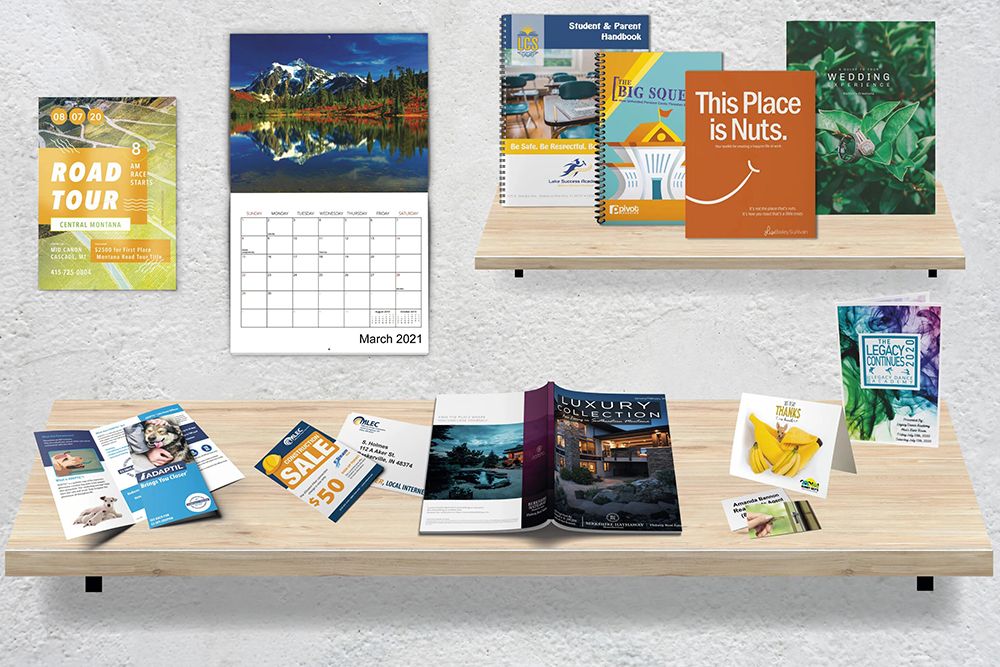 We help customers print things like business cards, invitations, letterhead, postcards, flyers, poster, brochures, catalogs, note cards, banners, tags and stickers, making it easy for them to share information about themselves and their business. Speak with one of our print specialists today to get started.
